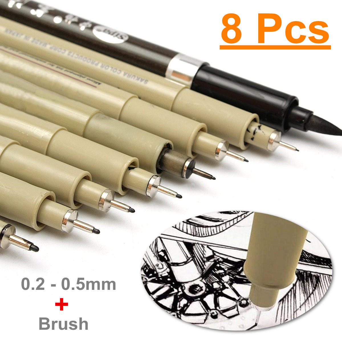 8pc Pigment Micron Sakura Neelde Soft Pennello Penna da disegno 005 01 02 03 04 05 08 Pennello Penna per pennarelli COD