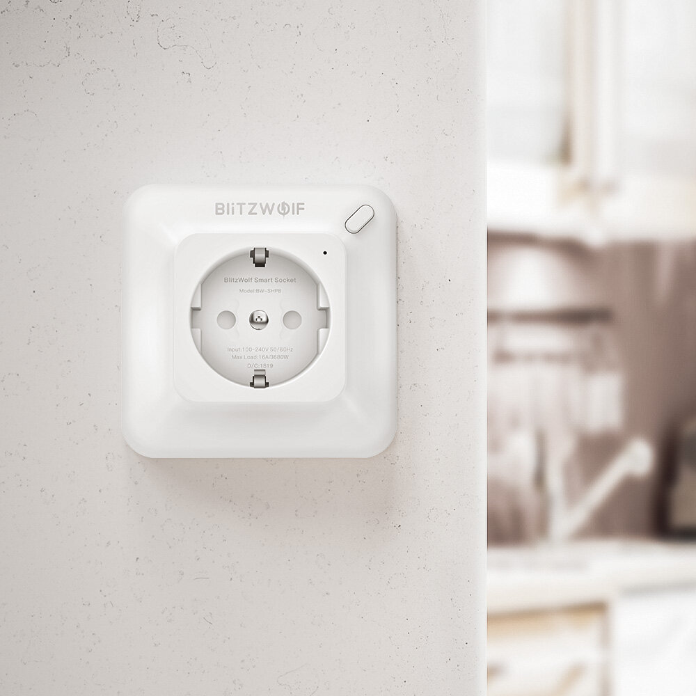 • BlitzWolf® BW-SHP8 3680W 16A presa a muro Smart WIFI Spina europea presa di corrente Timer remoto Controllo potenza di controllo Lavora con Alexa Google Assistant IFTTT