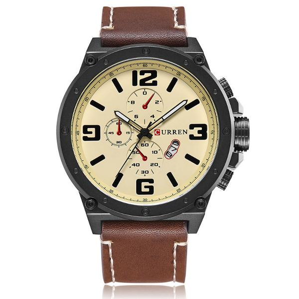 CURREN 8230 Fashion Large Visualizzazione numero degli uomini della vigilanza del quarzo cinturino in pelle Sport Watch COD