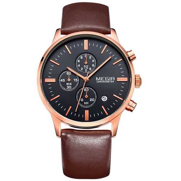 Orologio da uomo al quarzo in pelle con calendario cronografo da uomo business casual MEGIR 2011
