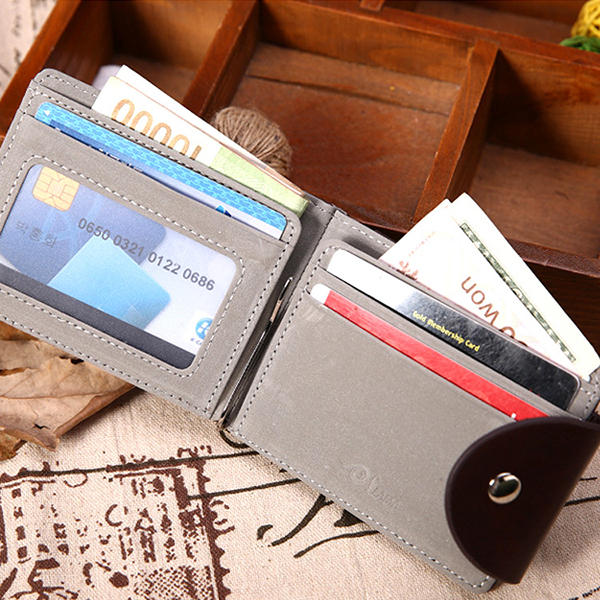 Portafoglio Corto in Pelle PU Formale con 6 Slot di Carte da Uomo COD