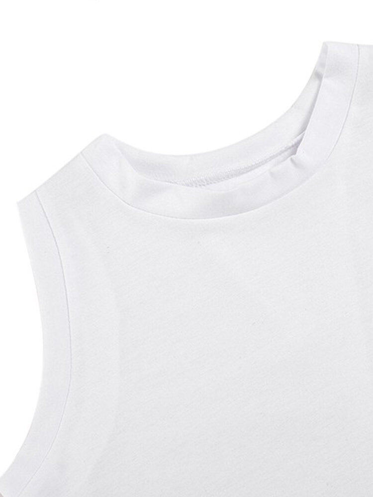 Le donne sexy senza maniche solido posteriore diviso cotone canotta maglia bianca COD
