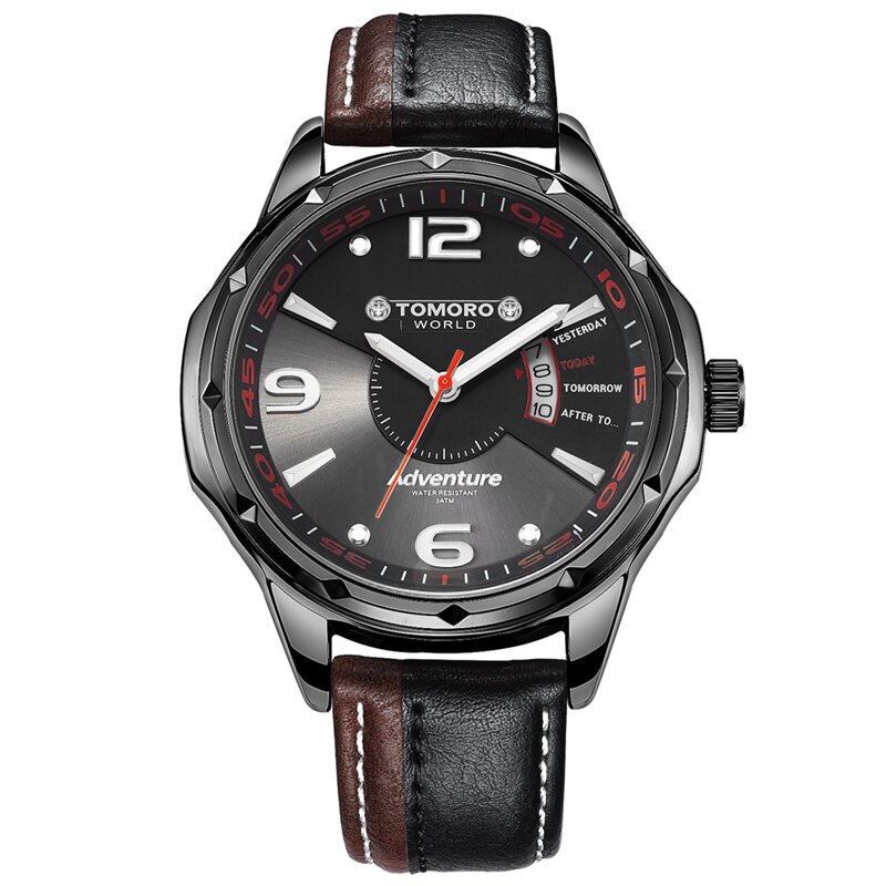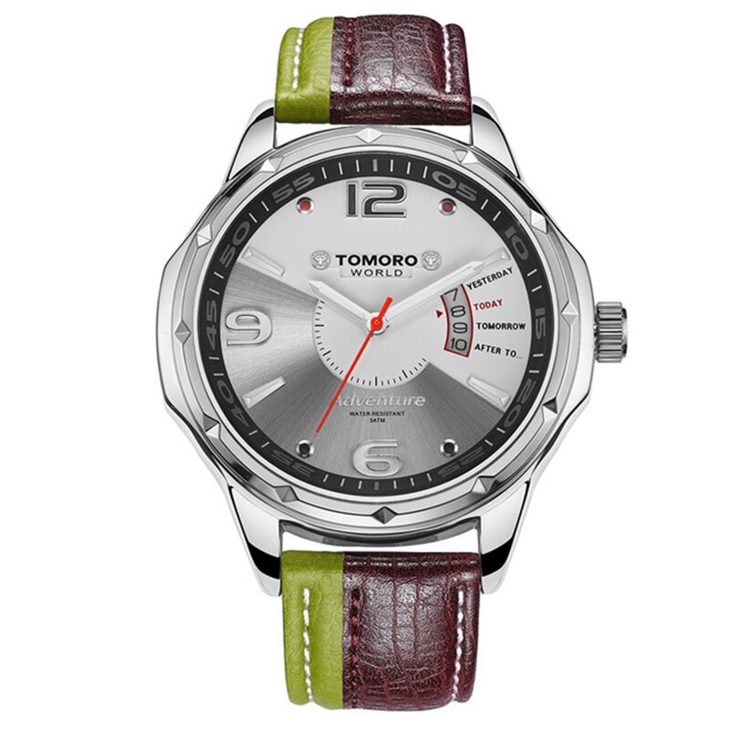 Tomoro Marca TMR0214 Orologio da Polso Calendario Doppio Colore in Pelle Quarzo Casual Elegante