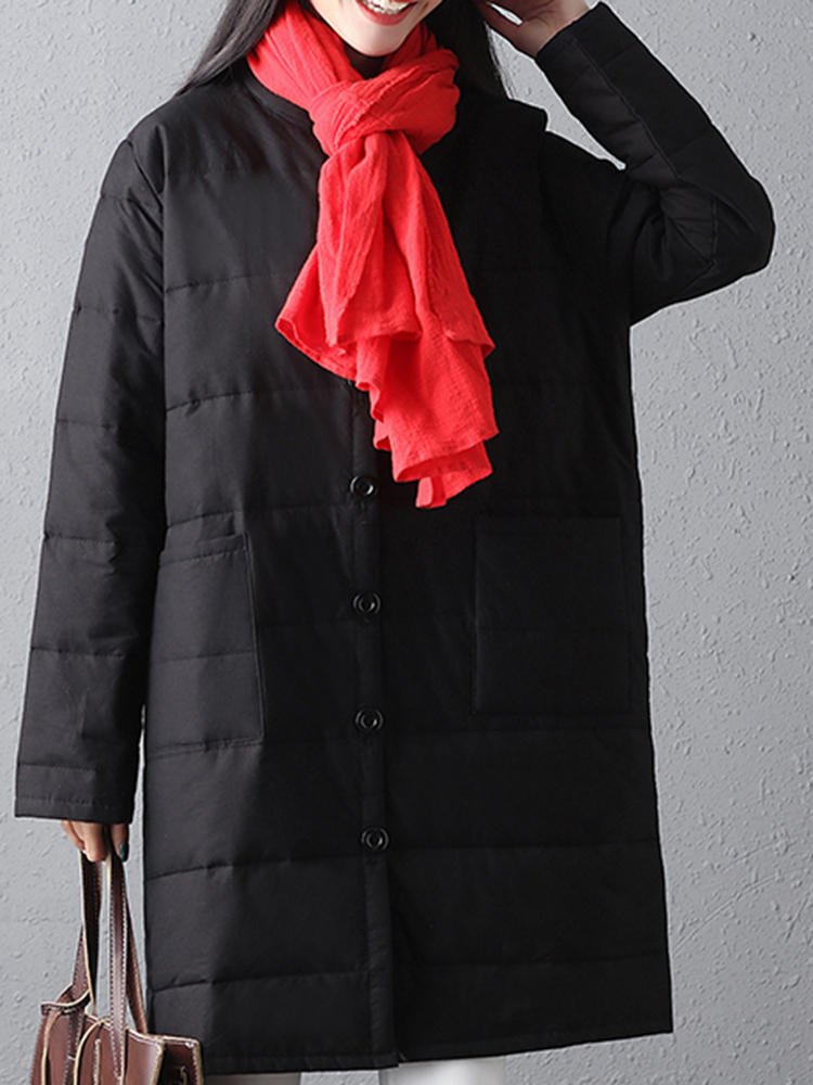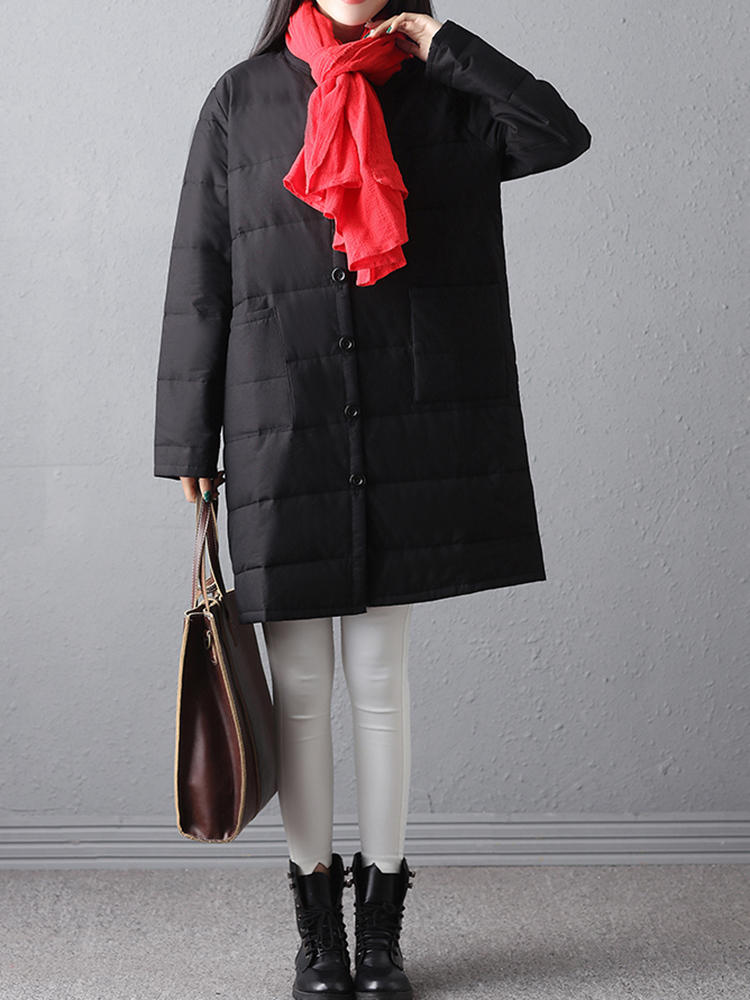 Donna Inverno caldo nero a maniche lunghe con bottoni a metà lunghezza