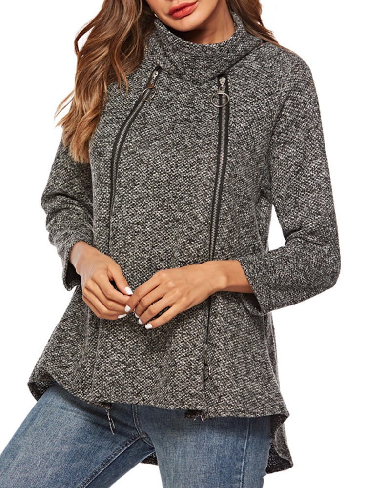 Cappotti a manica lunga con orlo asimmetrico con collo a zip da donna COD
