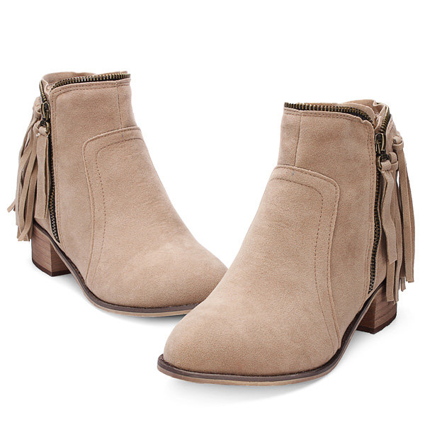 • Autunno inverno nappa scamosciata faux stivaletti da donna scarpe cerniera piatta