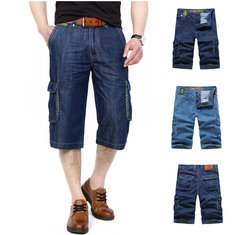 Ginocchio casuale estivo grande formato uomo Lunghezza Jeans medio Rise Sottile Pantaloncini Fit Denim