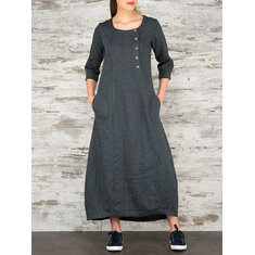 Plus Size Work Collo Maxi Dress a manica lunga da lavoro